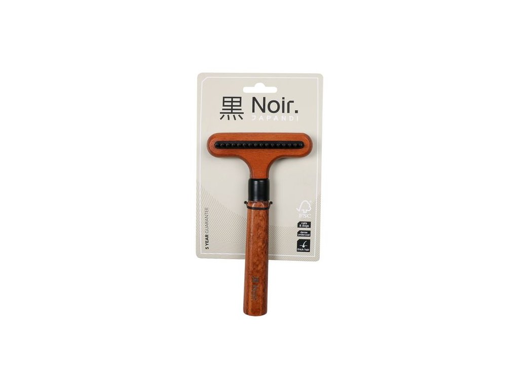 Hrable Noir Japandi s pozinkovanými nerezovými zubami proti zamotaniu srsti. Mäkké a jemné na použitie vďaka rotačným, pružným a elastickým zubom. Jeden rad 16 zubov pre miesta, ktoré nie sú ľahko dostupné a pre hustú podsadu. S ergonomickou rukoväťou z bukového dreva s certifikátom FSC s tmavo morenou povrchovou úpravou.