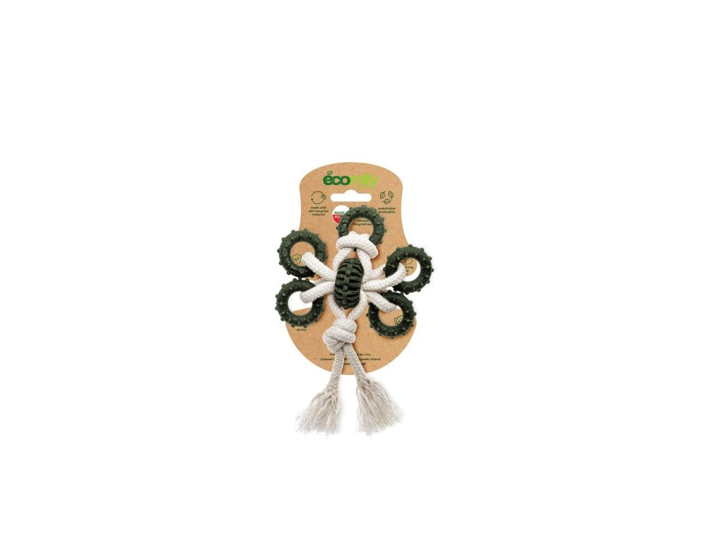 Zahŕňa rôzne tvarované výrobky pre psov vyrobené z potravinárskeho plastu TPE. Surovina je 100 % recyklovaná.Hračky sú bezpečné pre domáce zvieratá a všestranné - budú dobre fungovať so psami rôznych veľkostí a preferencií. Výrobky Olive Eco sú vysoko flexibilné a plávajúce, takže sú ideálne na hranie nielen v interiéri, ale aj vonku. Sú udržiavané v zaujímavej tmavej olivovej farbe odkazujúcej na prírodu. Boli navrhnuté a vyrobené v Poľsku.