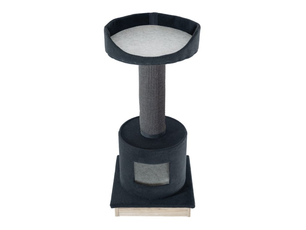 Zábava a starostlivosť pre mačky s plyšovým odpočívadlom. Kvalitný šedý materiál, ideálny na hranie a brúsenie pazúrov.