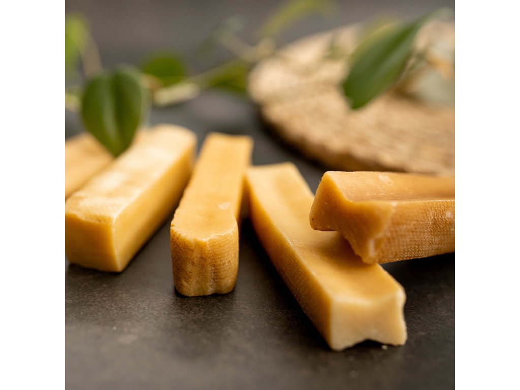 Dentálne tyčinky zo syra s ľanovými semienkami, zdravé a prirodzené maškrty pre psov, ktoré podporujú dentálnu hygienu a pomáhajú odstraňovať zubný kameň....
