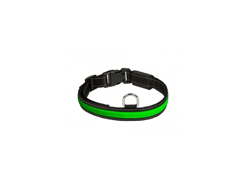Bezpečnostný svietiaci obojok pre dobrú viditeľnosť psa v šere a v tme. Obojok má LED podsvietenie po celom obvode.