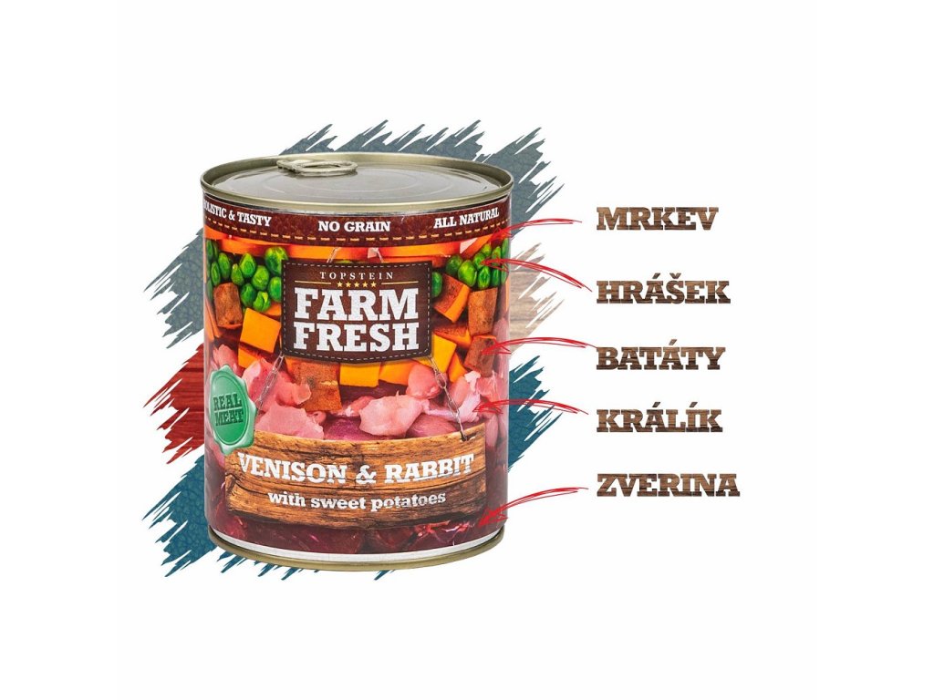 Farm fresh konzerva pre psov divina, králik a sladký zemiak 400g