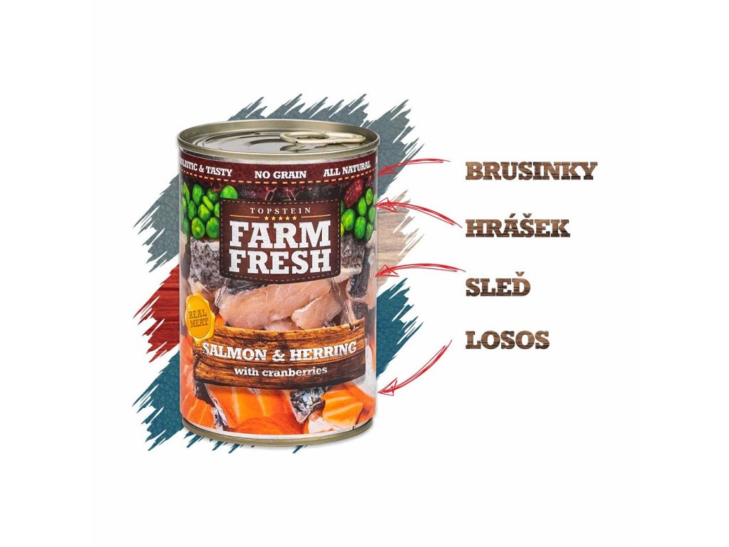 Farm fresh konzerva pre psov losos, sleď a brusnice 750g