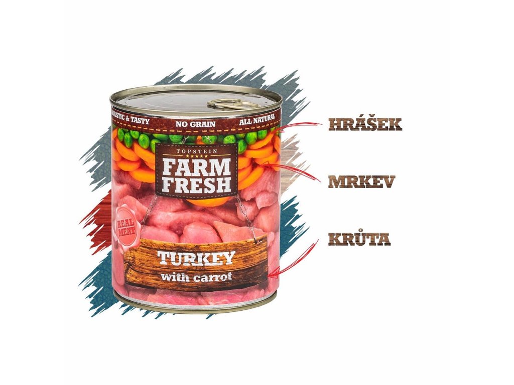 Konzerva Farm Fresh obsahuje mäso najvyššej biologickej kvality. Neobsahujú žiadne umelé konzervačné prostriedky, farbivá, ochucovadlá ani GMO. Superprémiová strava Farm Fresh je vyrobená v Nemecku a neobsahuje žiadne obilniny (označenie GRAIN-FREE).