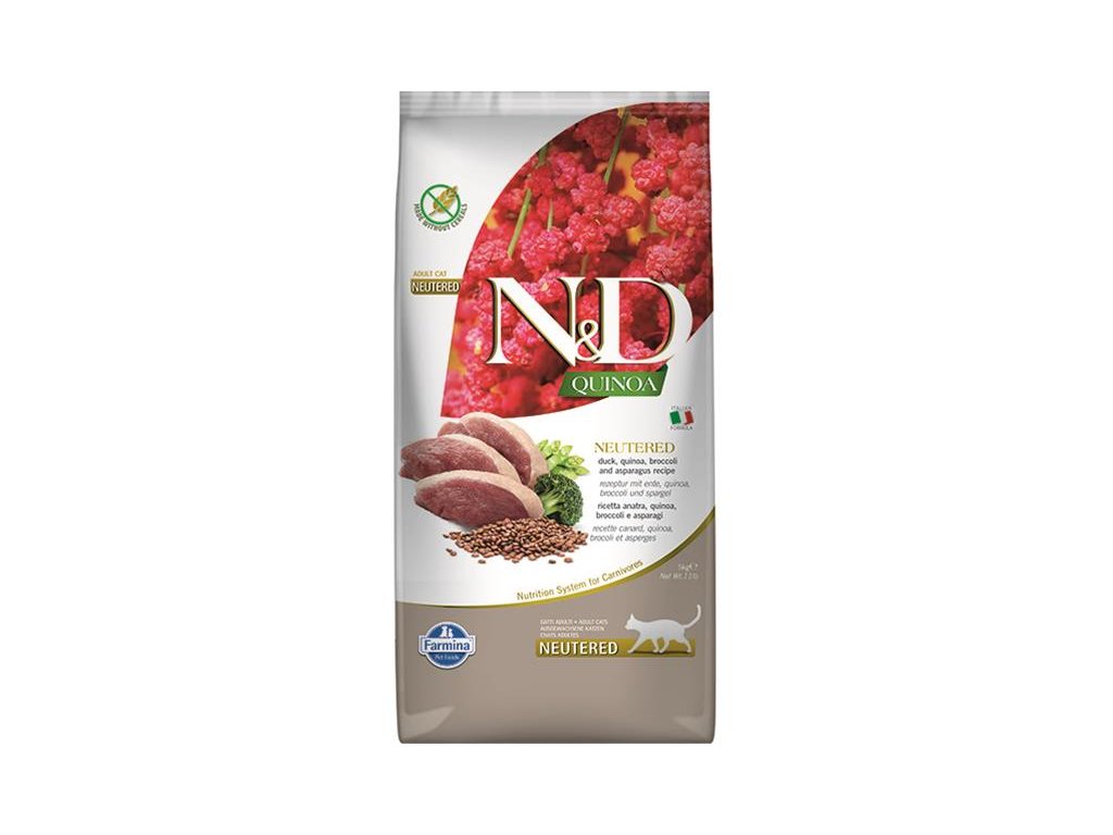 Farmina N&D cat QUINOA (GF) adult, neutered, duck, broccoli & asparagus 5 kg