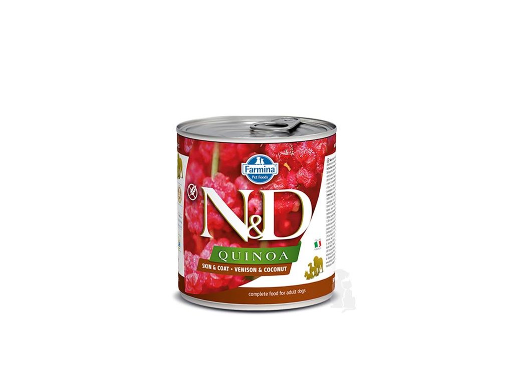 Farmina N&D Dog Quinoa Venison & Coconut je kompletné diétne krmivo pre psy, odporúčané na zníženie neznášanlivosti voči zložkám a živinám krmív.