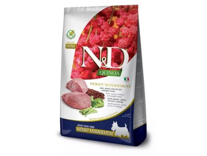 Farmina N&D Dog Quinoa Weight Management je kompletné diétne krmivo pre psy, odporúčané na zníženie nadmernej telesnej hmotnosti.
