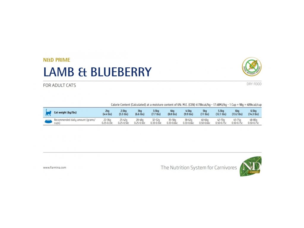 Návod na podávanie: Produkt podávajte bez úpravy, podľa odporúčanej dennej dávky uvedenej v tabuľke. Na začiatku sa odporúča zmiešať krmivo N&D s pôvodne podávaným krmivom. Čerstvá voda musí byť neustále k dispozícii. Vyrobené 18 mesiacov pred dátumom minimálnej trvanlivosti uvedenom na balení. Hmotnosť netto, dátum minimálnej trvanlivosti, kód šarže a registračné číslo fabriky sú uvedené na zadnej strane obalu.