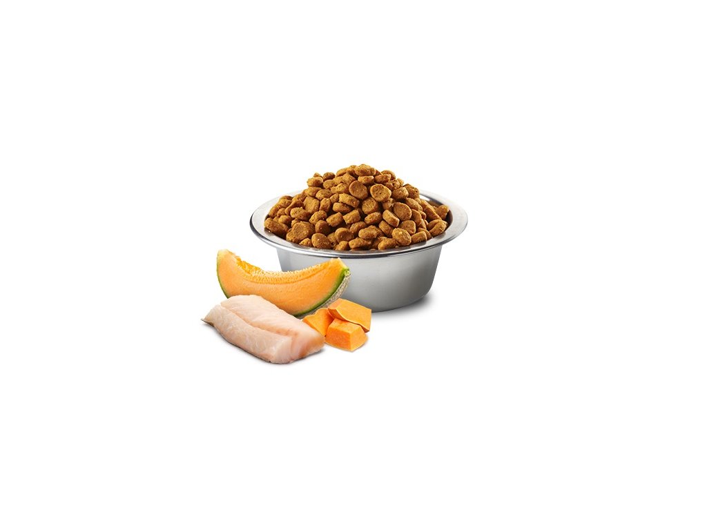Zloženie: Treska (28%), bielkoviny zo sušenej tresky (27%), sladký zemiak, rybí tuk (zo sleďov), bielkoviny zo sušených sleďov, sušená tekvica (5%), sušené krevety (zdroj glukozamínu a chondroitín sulfátu), hrachová vláknina, sušená mrkva, sušená lucerna, inulín, frukto-oligosacharidy, výťažok z kvasníc (zdroj mannán-oligosacharidov), sušený cantaloupe melón (0.5%), sušené jablká, sušené granátové jablká, sušený špenát, psýllium (semená a plevy), sušené čučoriedky, chlorid sodný, chlorid draselný, uhličitan vápenatý, sušené pivovarské kvasnice, kurkuma (0.2%), výťažok z aloe vera.
