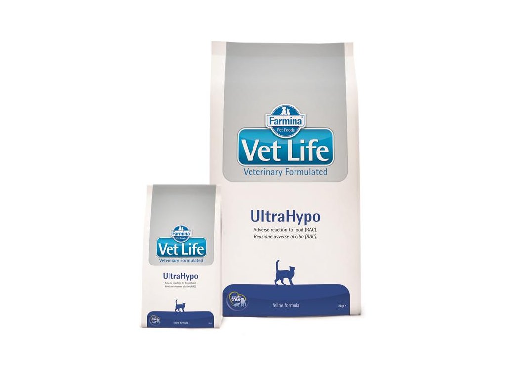 Farmina Vet Life UltraHypo je kompletná veterinárna diéta pre mačky s hydrolizovanou bielkovinou, odporúčaná na manažment pacientov s potravinovou alergiou, potravinovou intoleranciou a tiež na zlepšenie kvality kože a srsti v prípade dermatóz a nadmerného vypadávania srsti. Diéta doporučená aj v prípadoch opakovaného zvracania a chronických zápalových ochorení čriev (IBD).
