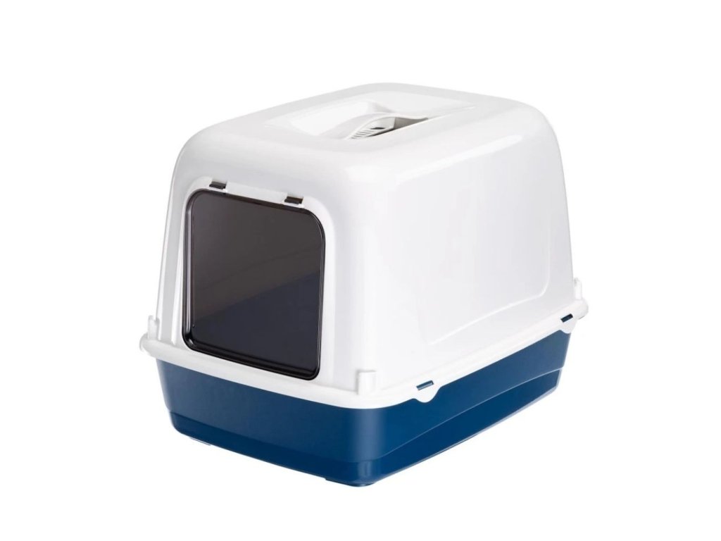 Uzavretá, priestranná toaleta pre mačky s horným prielezom z kvalitného odolného plastu. Vďaka hornému prielezu nevyhrabe mačka stelivo von a všetky...