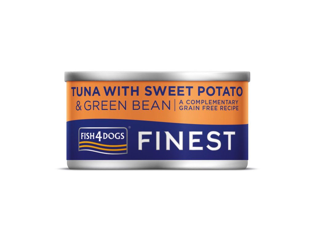 FISH4DOGS Konzerva pre psov Finest s tuniakom, sladkými zemiakmi a zelenými fazuľkami 85g