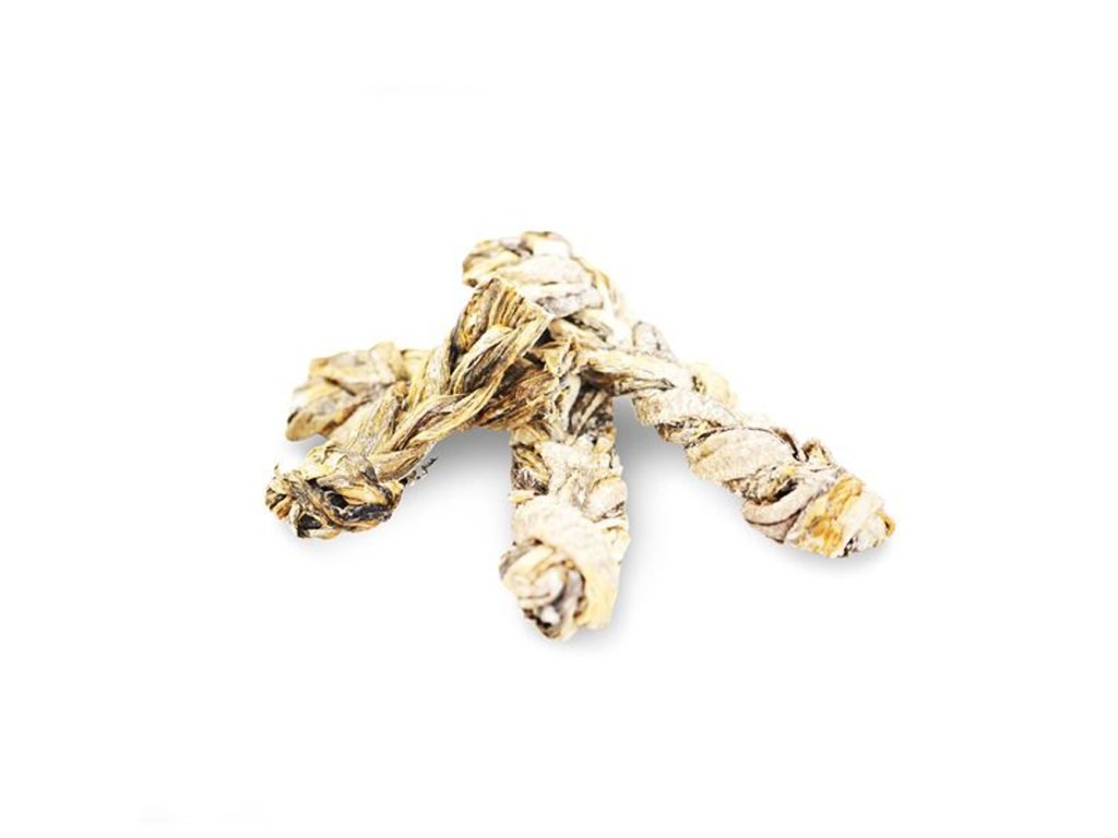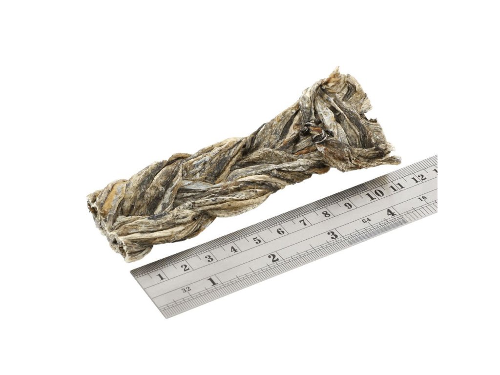 Hovädzia koža s rybou povrchovou úpravou, ideálna na žuvanie; kvalitný materiál a dlhodobé uspokojenie pre vášho psa.