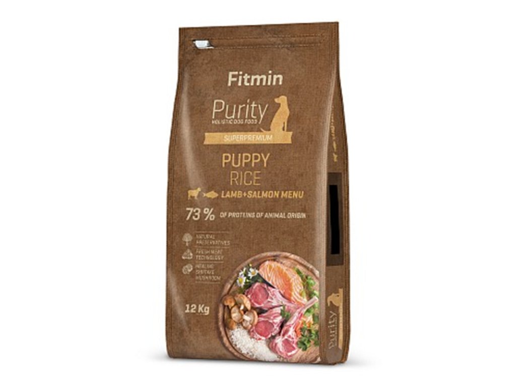 Fitmin dog Purity Rice Puppy Lamb & Salmon je kompletné krmivo pre šteňatá.