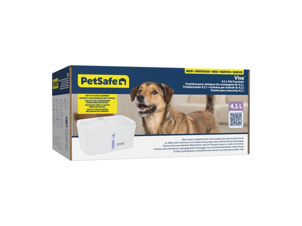 Doprajte svojej mačke či psíkovi fontánku Viva™, do ktorej sa zamiluje hneď na prvý dúšok! Fontánka udržuje vodu stále čerstvú a tečúcu, takže váš domáci maznáčik bude piť viac vody každý deň. Dvojitá filtrácia zaisťuje, že voda chutí skvele a vyzerá ešte čistejšie. Vďak týmto výhodám poskytuje zážitok, ktorý tradičné misky pre domáce zvieratá jednoducho nedokážu ponúknuť. Výhody, ktoré ponúkajú fontánky oproti klasickým miskám neocenia len domáci maznáčikovia. Oceníte ich aj vy, ich starostilvý rodičia. Vďaka ich používaniu sa môžete rozlúčiť s každodenným plnením a čistením obyčajných misiek na vodu! Pomôžte svojmu miláčikovi zostať zdravý a šťastný s touto 4.1-litrovou fontánkou Viva™ od PetSafe®. Fontánka Viva™ s objemom 4.1 litra je vhodná hlavne pre psov.