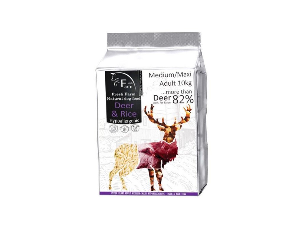 Fresh Farm Adult Medium&Maxi Intolerance - Deer & Rice je kompletné superprémiové krmivo určené pre dospelých psov stredných a veľkých plemien. S obsahom unikátneho druhu živočíšnych bielkovín...