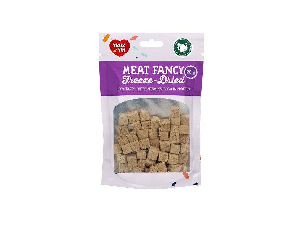 Have A Pet Meat Fancy Freeze Dried je rad prírodných pochúťok pre psy a mačky, ktoré kombinujú intenzívnu chuť mäsa s jemným procesom sušenia mrazom. Bez zbytočných prísad, ale s maximálnou chuťou a výživovou hodnotou.