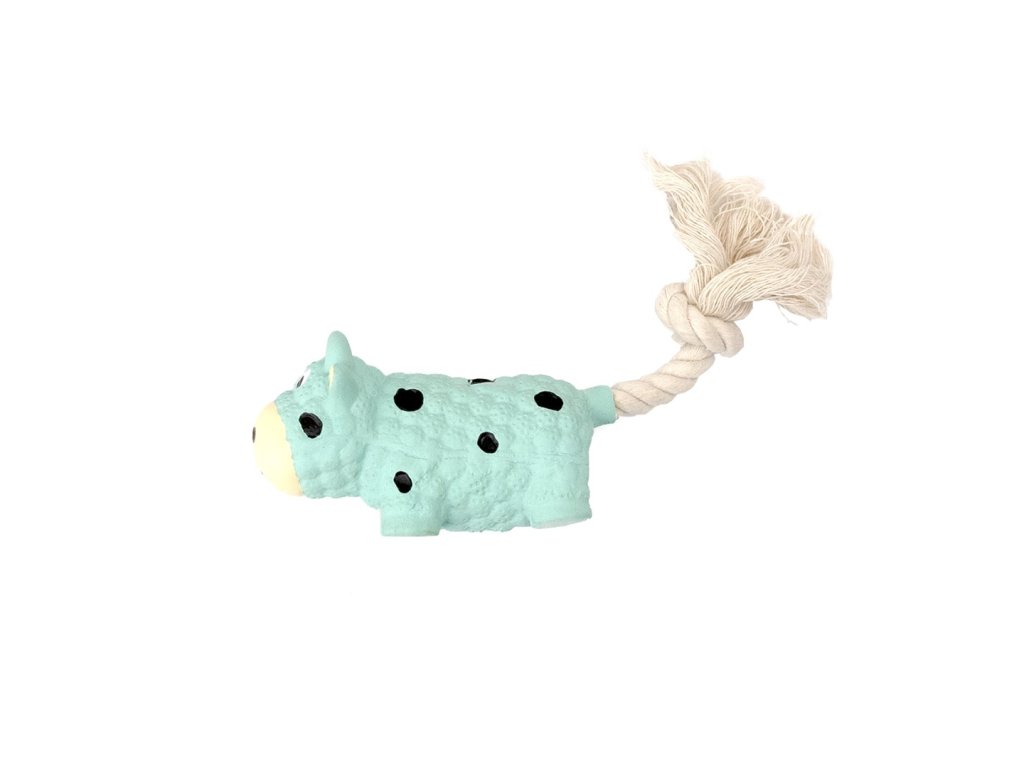 Hračka značky Have a Pet v tvare hravého krpca je ideálna pre psov, ktorí radi hryzú a hrajú sa. Je vyrobená z netoxického latexu a poskytuje bezpečnosť a pohodlie počas hry. Hračka má šnúrkový chvost, ktorý je ideálny na ťahanie a aportovanie, čo podporuje fyzickú aktivitu a posilňuje puto medzi psom a opatrovateľom. Mäkký, pružný materiál je šetrný k zubom a ďasnám, pričom vydrží intenzívne hryzenie. Pastelovo modrá farba s čiernymi škvrnami dodáva hračke atraktívny vzhľad, ktorý priťahuje pozornosť domáceho maznáčika. Vďaka veľkosti 22,5 cm je ideálna pre stredné až veľké plemená psov. Vďaka svojmu robustnému spracovaniu zaručuje výrobok Have a Pet hodiny skvelej zábavy. Je ideálnou voľbou na hru v interiéri aj exteriéri!