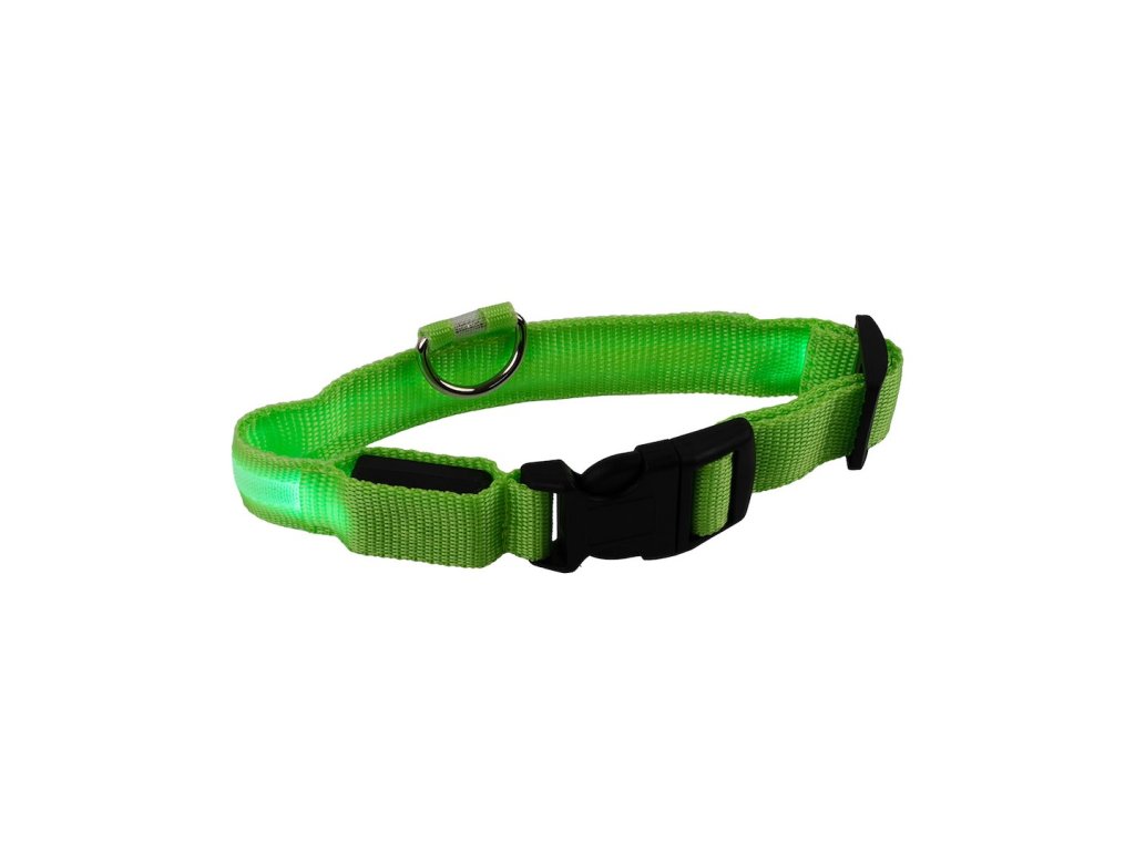Je vybavený zabudovanými LED diódami a vyžaruje jasné zelené svetlo, vďaka ktorému je váš domáci maznáčik dobre viditeľný aj na diaľku - počas večerných prechádzok, pri obmedzenom osvetlení alebo za zhoršených poveternostných podmienok.