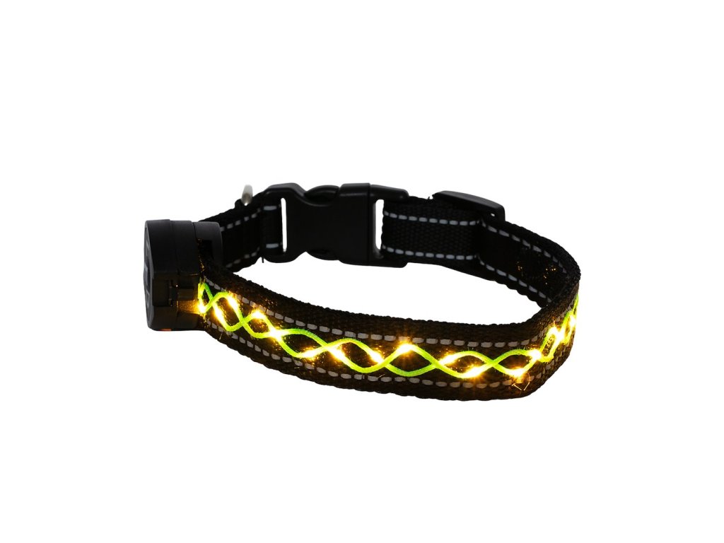 Bezpečnostný svietiaci obojok pre dobrú viditeľnosť psa v šere a v tme. Obojok má LED podsvietenie po celom obvode.