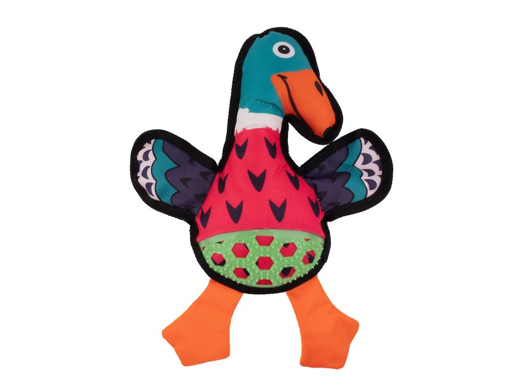 Plyšová kačica Have a Pet Funny Duck v modrej farbe je jedinečná hračka, ktorá kombinuje atraktívny vzhľad s odolnosťou. Jej spodná časť bola vystužená odolným materiálom TPR, vďaka čomu je ideálna ako hračka na žuvanie a ťahanie. Zabudované pískatko ďalej stimuluje aktivitu psa, podnecuje inštinkty a spestruje každodennú hru.