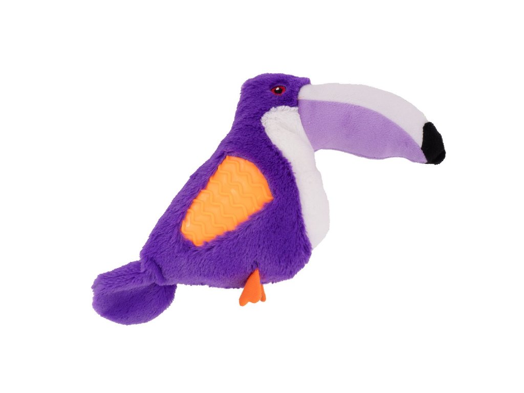 Výrobok: plyšová hračka - fialový tukan s oranžovým krídlom