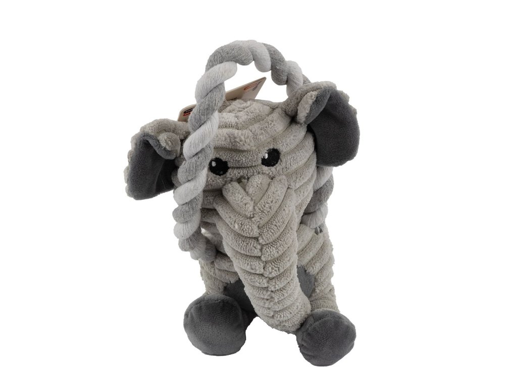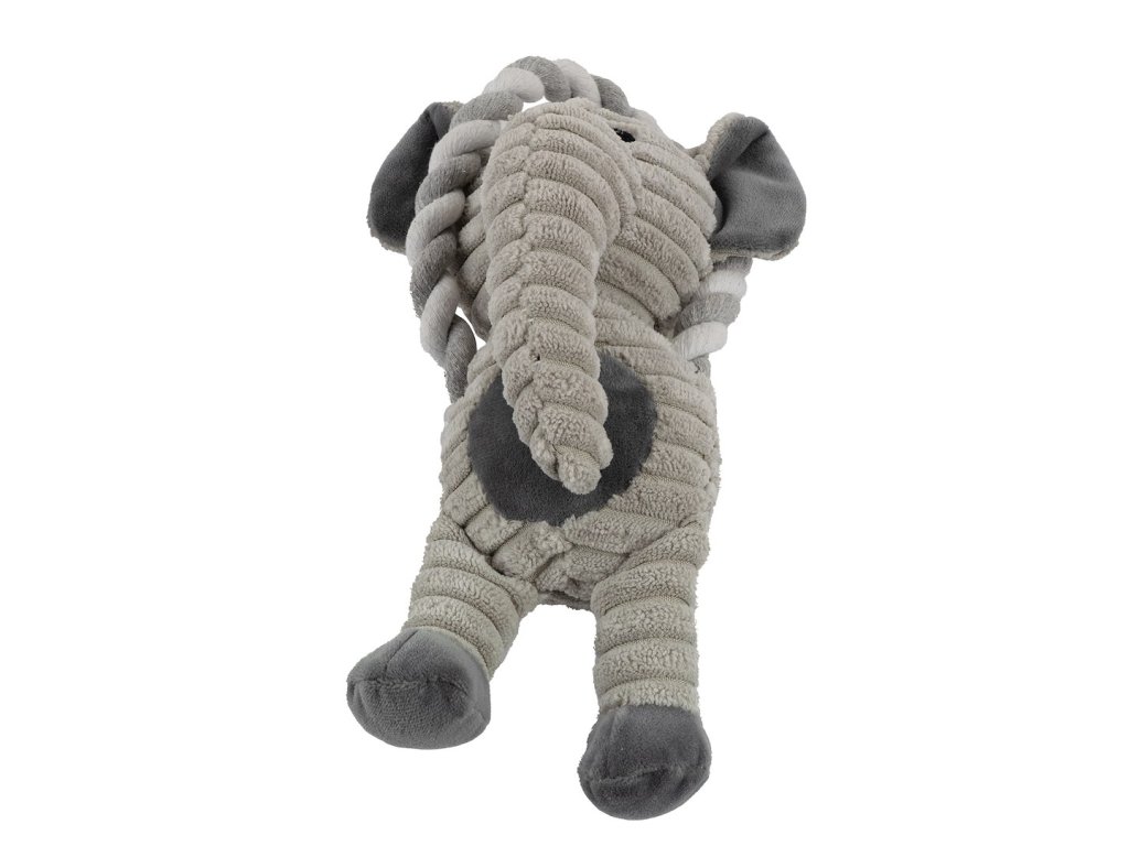 Slon je vyrobený z materiálu príjemného na dotyk v odtieňoch sivej farby a je vybavený silnou bavlnenou šnúrkou na žuvanie a ťahanie, pričom pomáha čistiť zuby a masírovať ďasná.