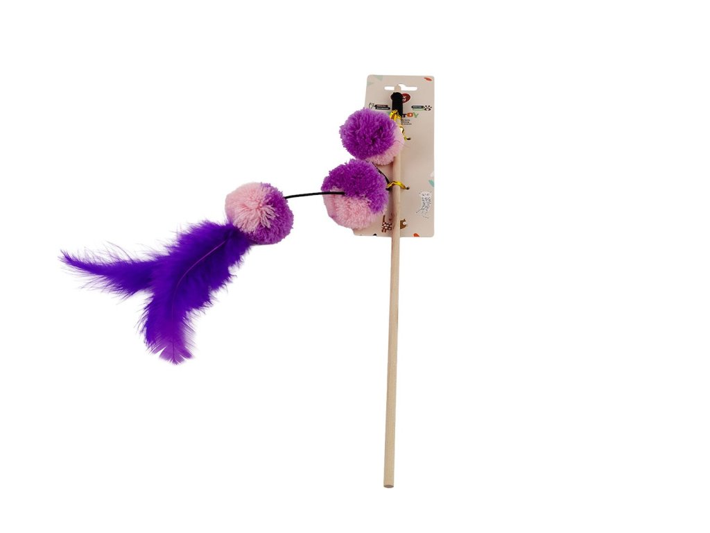 - Typ hračky: rybársky prút pre mačky s bambuľkami a pierkami