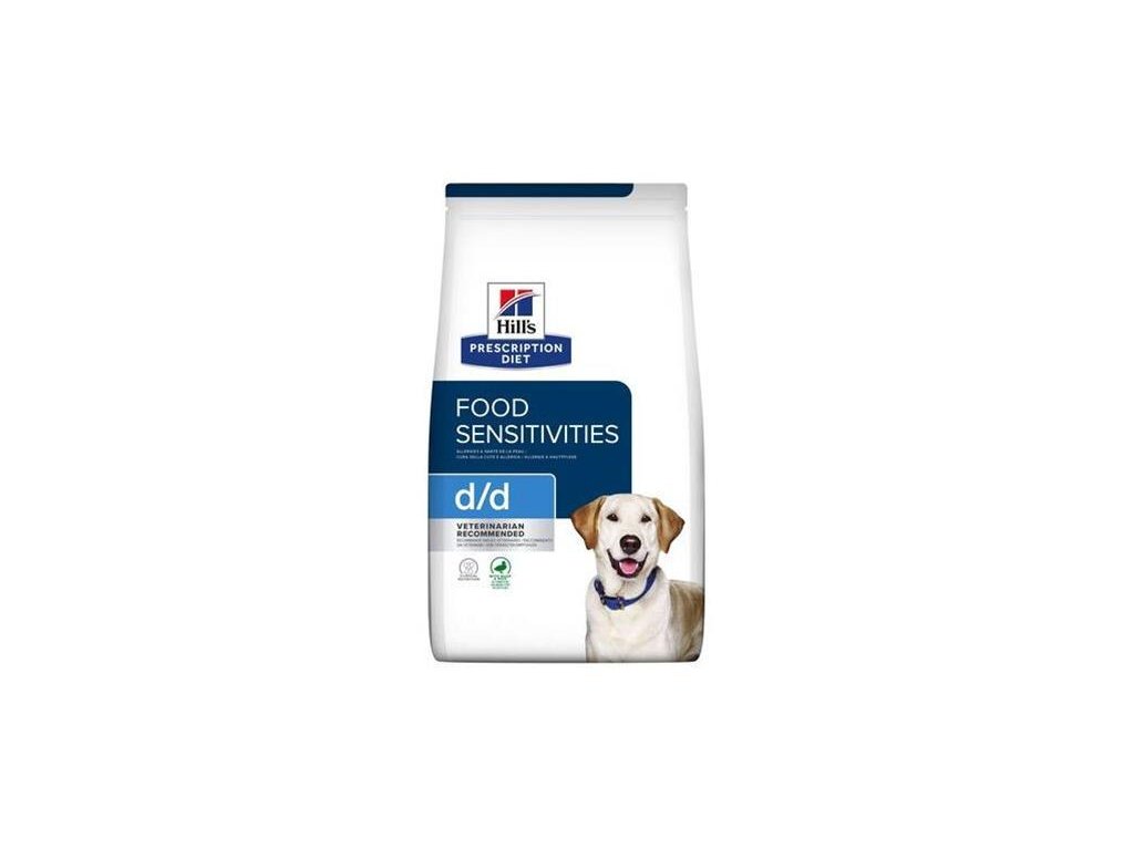 Hill's PRESCRIPTION DIET d/d krmivo pre psy s kačicou a ryžou je kompletné dietetické krmivo pre zníženie intolerancie prísad a živín u dospelých psov a na podporu funkcie kože v prípade dermatózy a nadmernej straty srsti u dospelých psov. Toto krmivo má vysoký obsah kyseliny linolovej (LA) a kyselín eikosapentaénovej (EPA) a dokosahexaenovej (DHA) a tiež obmedzených a vybraných zdrojov bielkovín a sacharidov.
