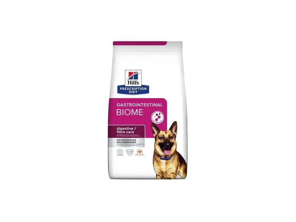 Hill's PRESCRIPTION DIET Gastrointestinal Biome krmivo pre psov s kuraťom je vysoko stráviteľné kompletné dietetické krmivo používané na zmiernenie porúch vstrebávania živín v črevách a na kompenzáciu zlého trávenia u dospelých psov. Toto krmivo obohatené o vlákninu má zvýšený obsah sodíka a draslíka a obsahuje vysoko stráviteľné prísady.