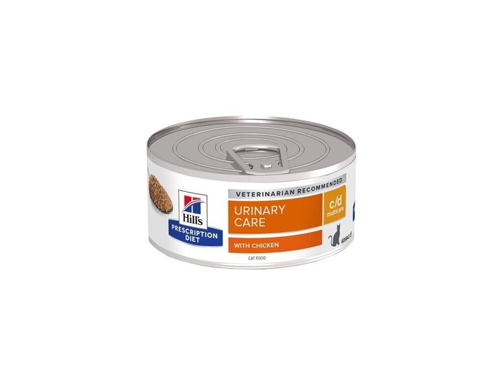 Hill's PRESCRIPTION DIET c/d Multicare krmivo pre mačky s kuraťom je kompletné dietetické krmivo na zníženie recidívy struvitových kameňov (príčiny ochorenia dolných močových ciest u mačiek, FLUTD), rozpustenie struvitových kameňov a na obmedzenie tvorby oxalátových kameňov u dospelých mačiek. Toto krmivo vytvára prostredie nevhodné na tvorbu struvitu, podporuje zásaditosť moču a má nízky obsah horčíka, vápnika a vitamínu D.