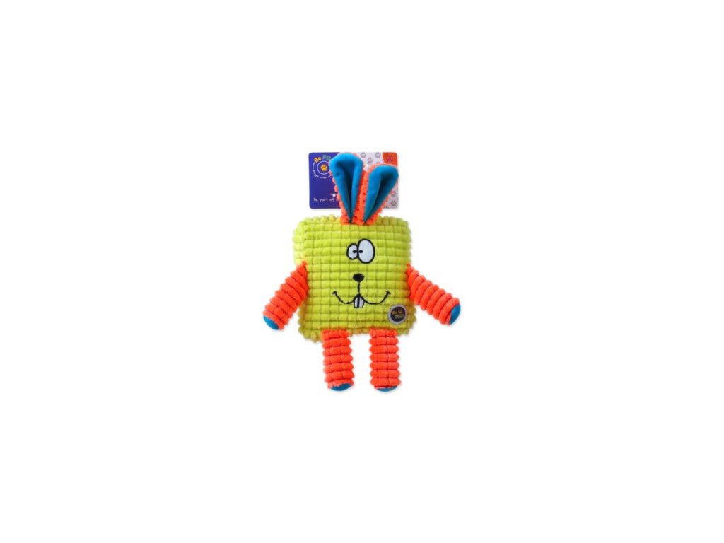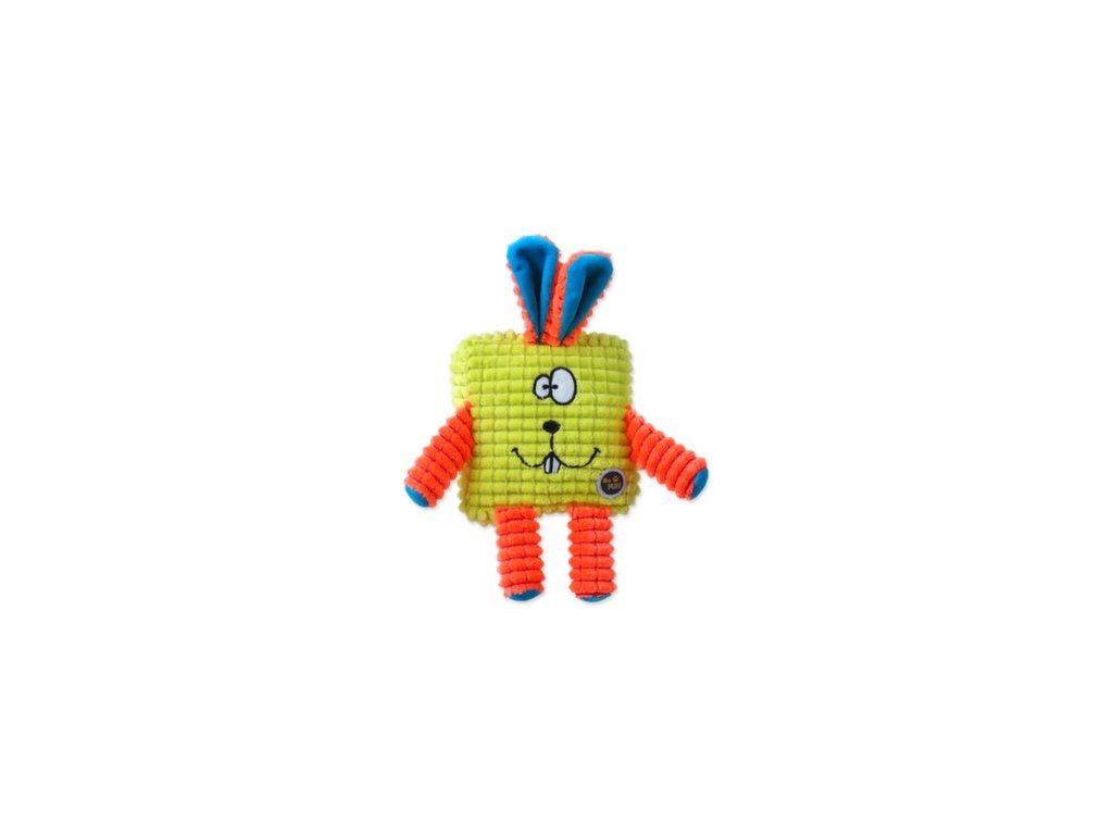 - Hračka je vo všetkých miestach mäkká a obsahuje voľné prvky (uši, ruky, nohy), ktoré povzbudzujú zviera k hre.