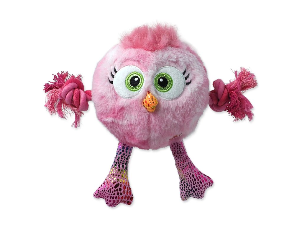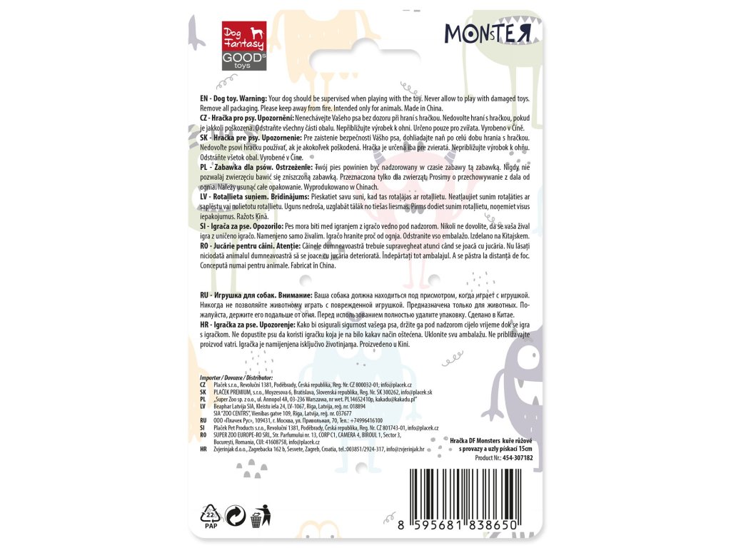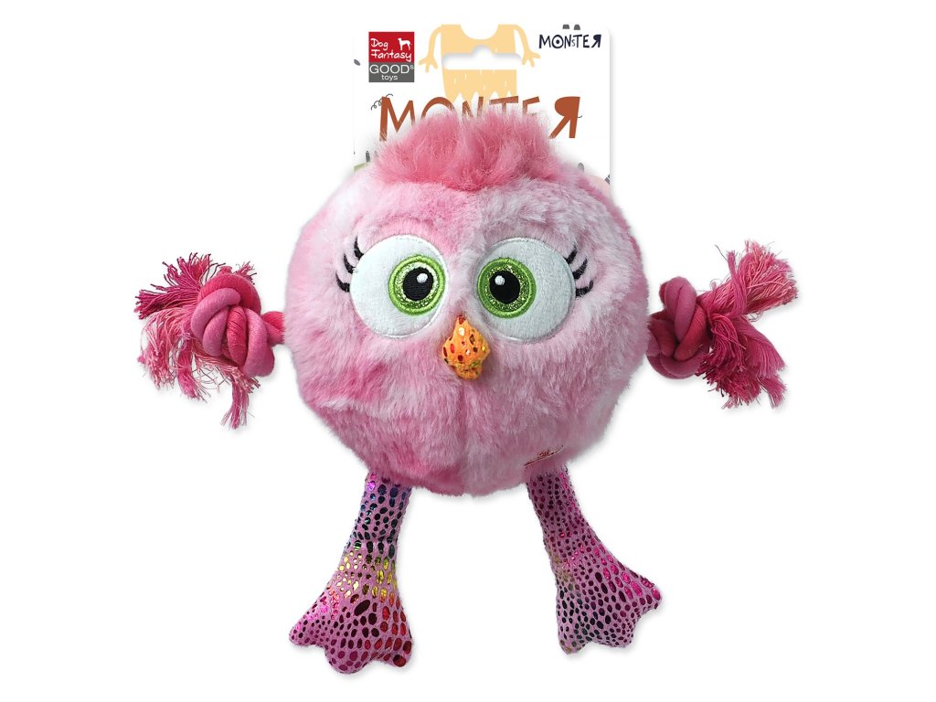 Hračka Dog Fantasy Monsters kura pískacie s povrazmi a uzlami ružové 15cm