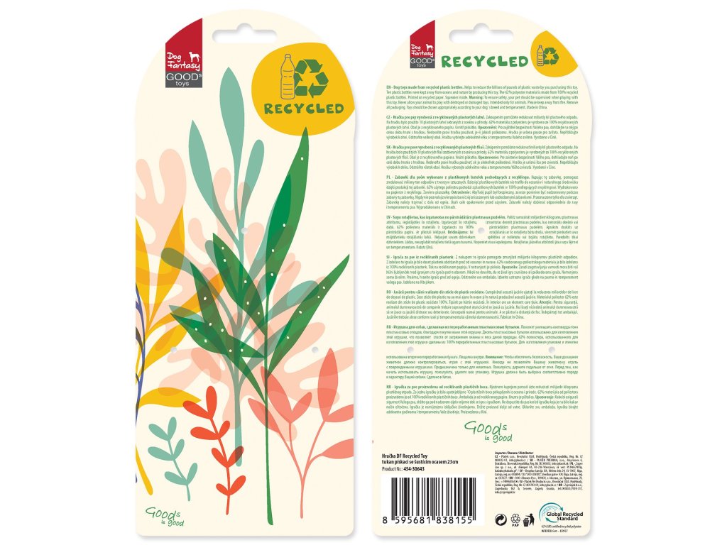 Hračka Dog Fantasy Recycled Toy tukan pískací so šuštiacim chvostom 23cm