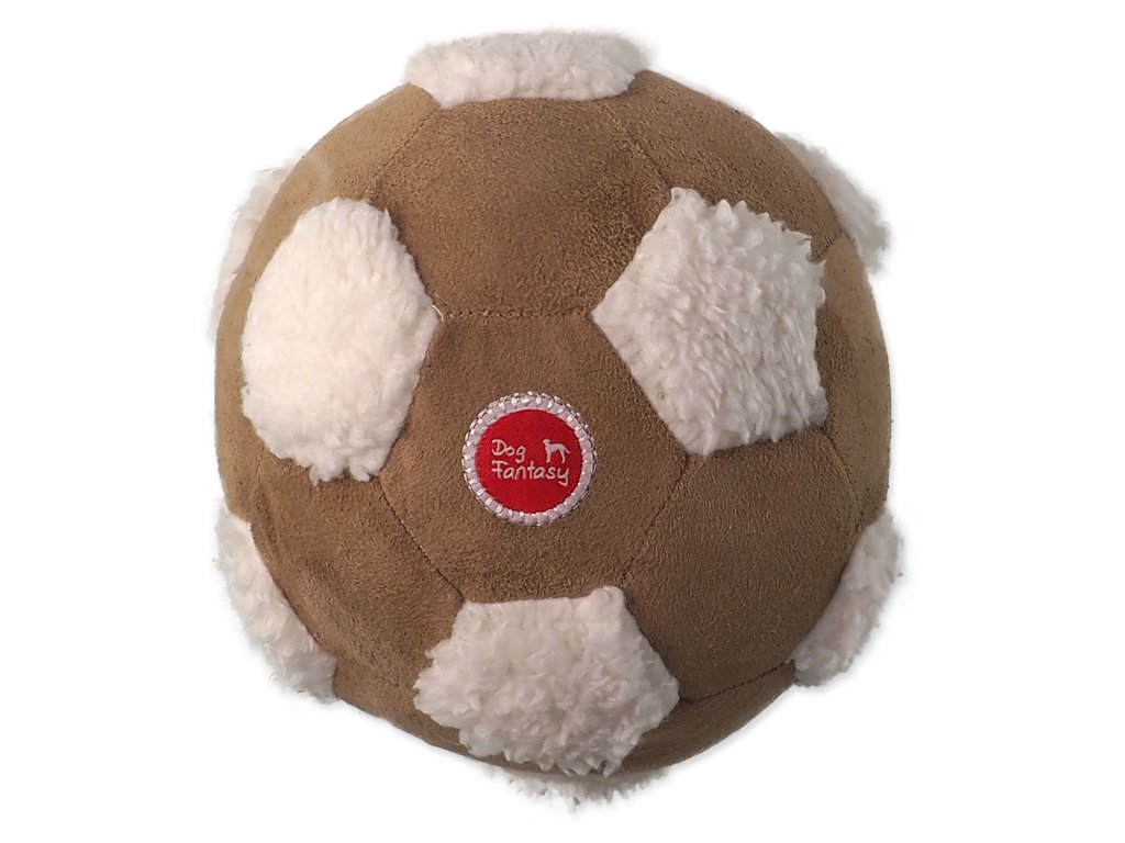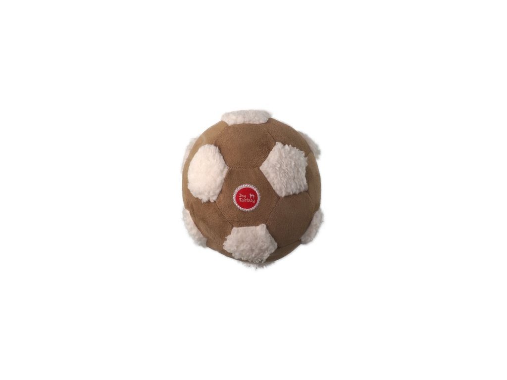 Plyšová hračka v tvare lopty s pískatkom vo vnútri.