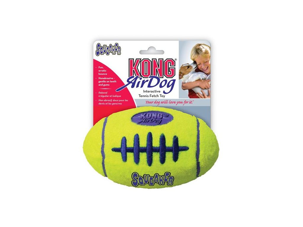 KONG AirDog Squeaker Football kombinuje dve klasické hračky pre psy – tenisovú loptičku a pískatko –pre dokonalú hračku na aport. Neabrazívny vysoko kvalitný materiál neopotrebováva chrup psa. Nájdite obľúbený tvar AirDog vášho psa a zábava sa môže začať.