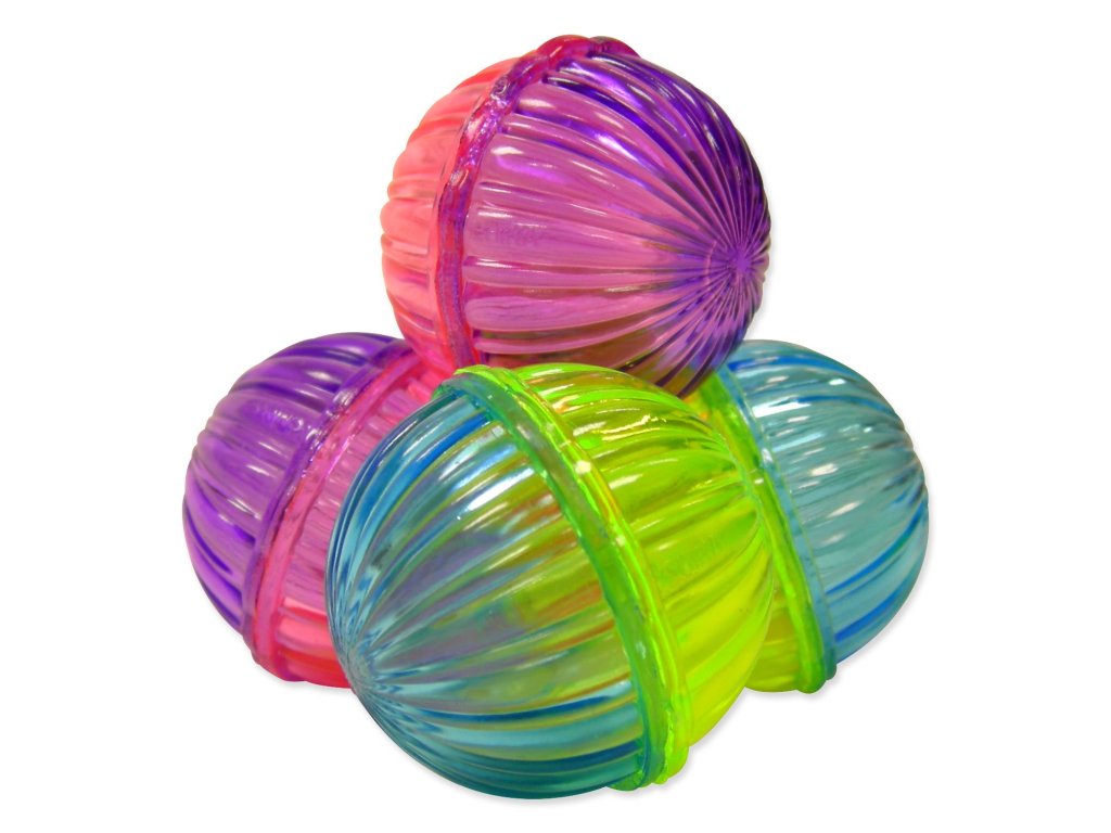 Hračka pre mačku vo forme lesklej loptičky. Balenie obsahuje štyri loptičky rôznych farieb s hrkalkou.