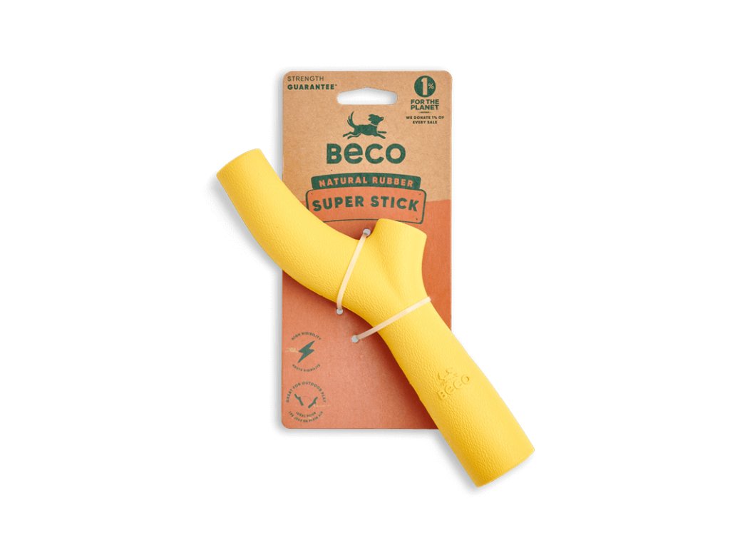 Odolná žuvacia hračka pre psa, ktorá je pripravená na dobrodružstvá. Prírodný kaučuk robí túto hračku pružnou a uspokojujúcou pri žuvaní bez rizika poranenia trieskou. Duté konce môžete naplniť orechovým maslom alebo pastou, čím sa stáva skvelou hračkou pre domácu zábavu. Hračka pre psov, Beco Super Stick má žiarivú farbu, je ergonomická a vďaka svojmu dizajnu je ideálna na aportovanie na prechádzkach.
