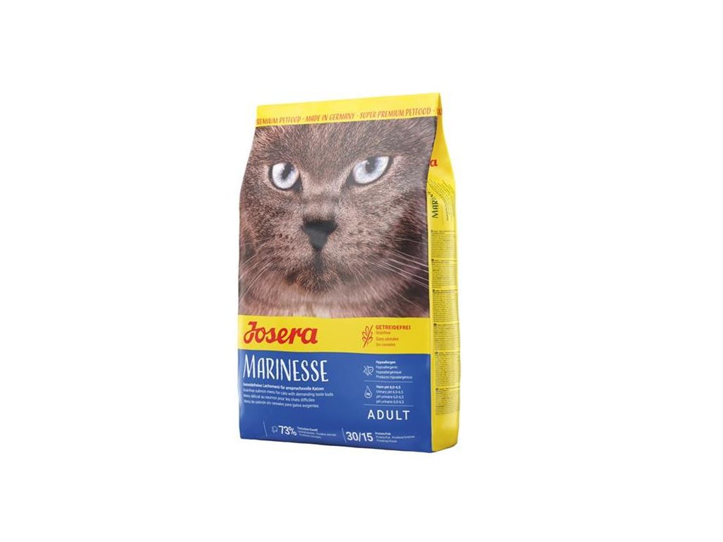 Josera predstavuje kompletné krmivo pre dospelé mačky. S množstvom lososa a bez obilnín je Josera Marinesse ideálne krmivo pre citlivé mačky. Vybrané suroviny a znížený počet bielkovinových zdrojov ponúkajú alternatívu pre zvieratá s krmivovou neznášanlivosťou.