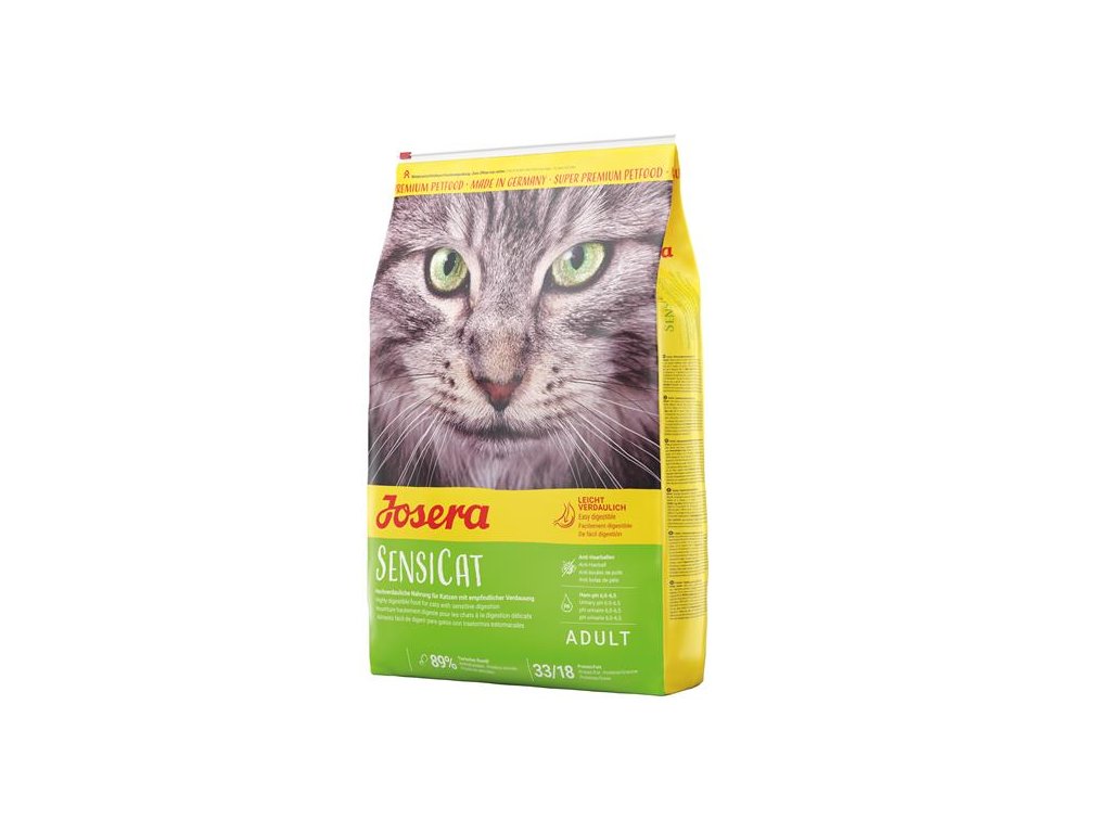 Josera predstavuje kompletné krmivo pre dospelé mačky. Vďaka extra ľahkej receptúre je Josera SensiCat ideálne krmivo pre citlivé mačky Vďaka extra dietetickej vláknine je Catelux ideálnym krmivom tiež pre mačky so sklonom k tvorbe chlpových bezoárov.