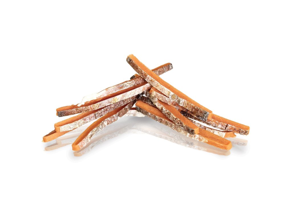 Kid Dog steak v prúžku je lahodný pamlsok z lososa, ktorým potešíte všetky veľkosti a plemená psov. Pamlsok je pomerne mäkký a dá sa tak nalámať alebo nastrihať na menšie kúsky.