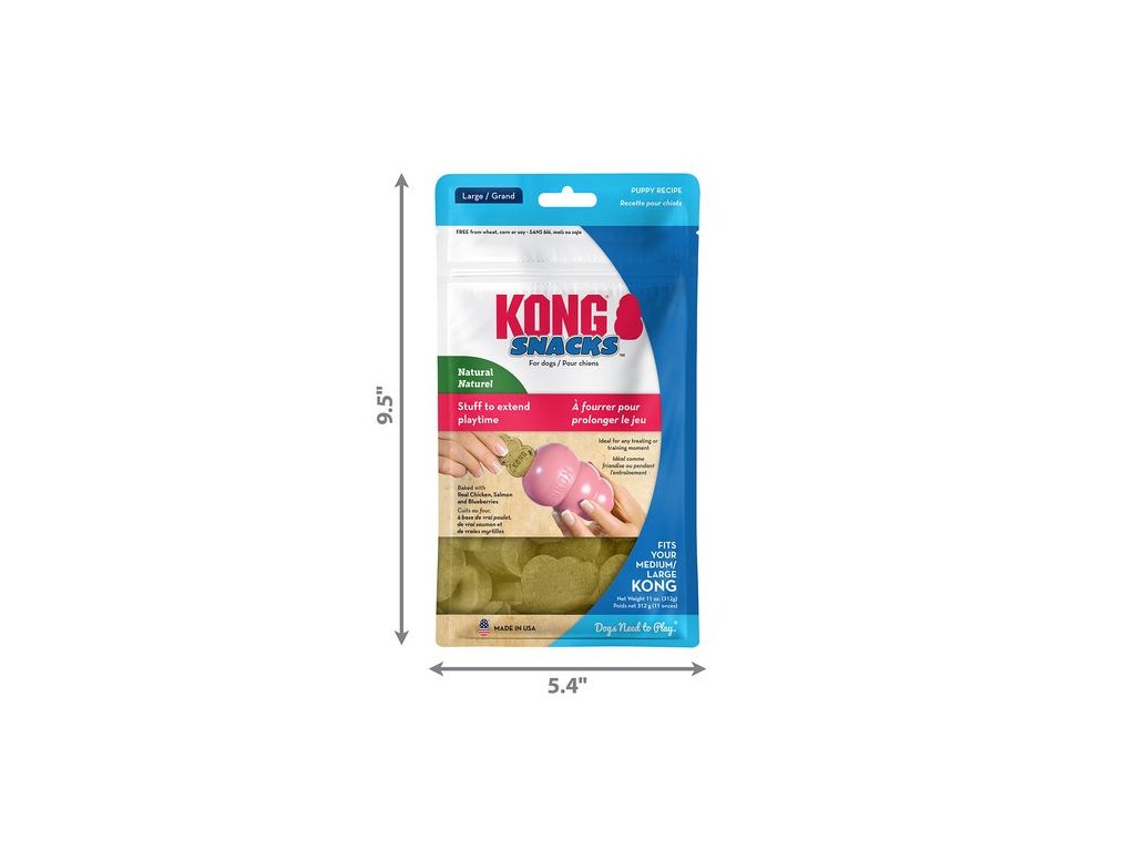 Menšia veľkosť maškrty je špeciálne tvarovaná a dimenzovaná tak, aby vyhovovala malej gumenej hračke vášho šteňaťa KONG Puppy.