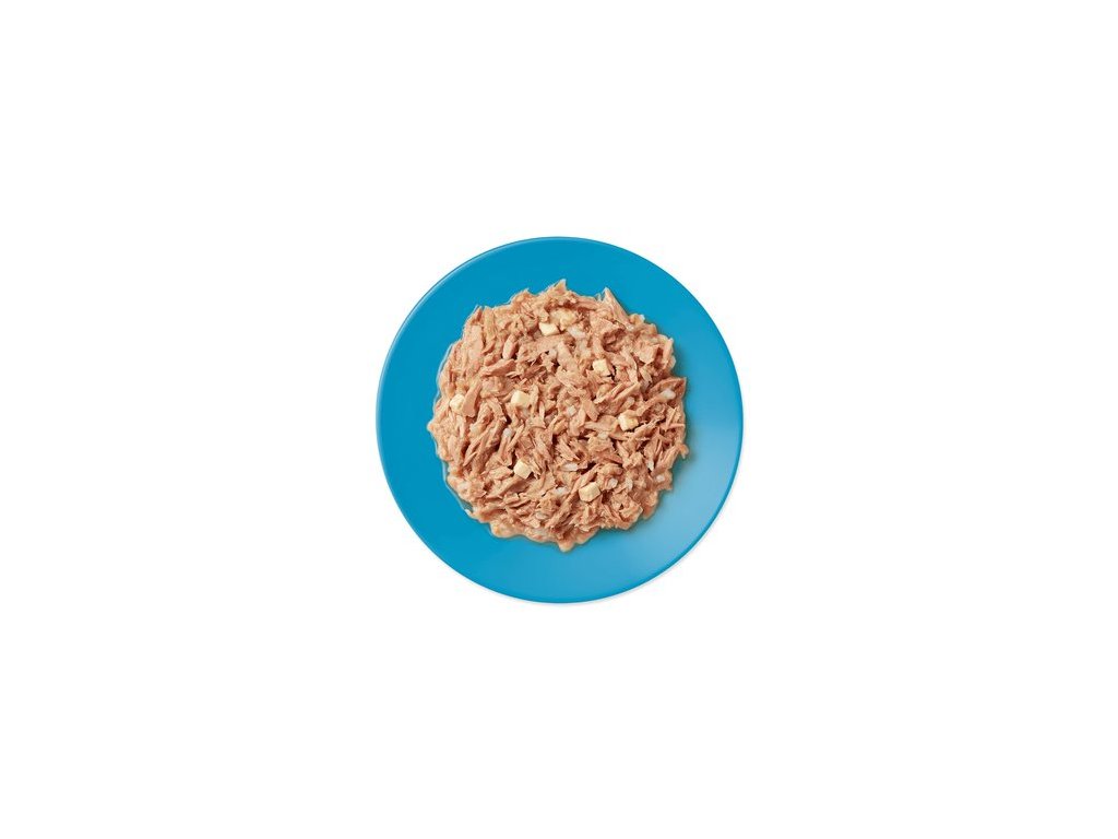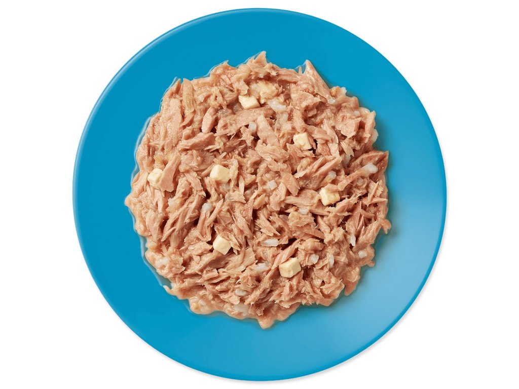 Zloženie: tuniak 70%, rybací vývar 23%, syr 6%, ryža 1%.