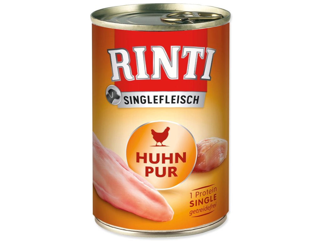 RINTI konzerva pre psa s kuracím mäsom 800g.Kompletné krmivo pre psov. Celkový obsah mäsa a vnútorností 70%.Zloženie: Kuracie mäso 20%, svalovina, bachor,...