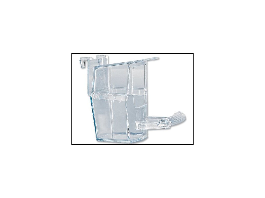 Plastové krmítko do klietok. Šírka je 7cm aj s bidielkom