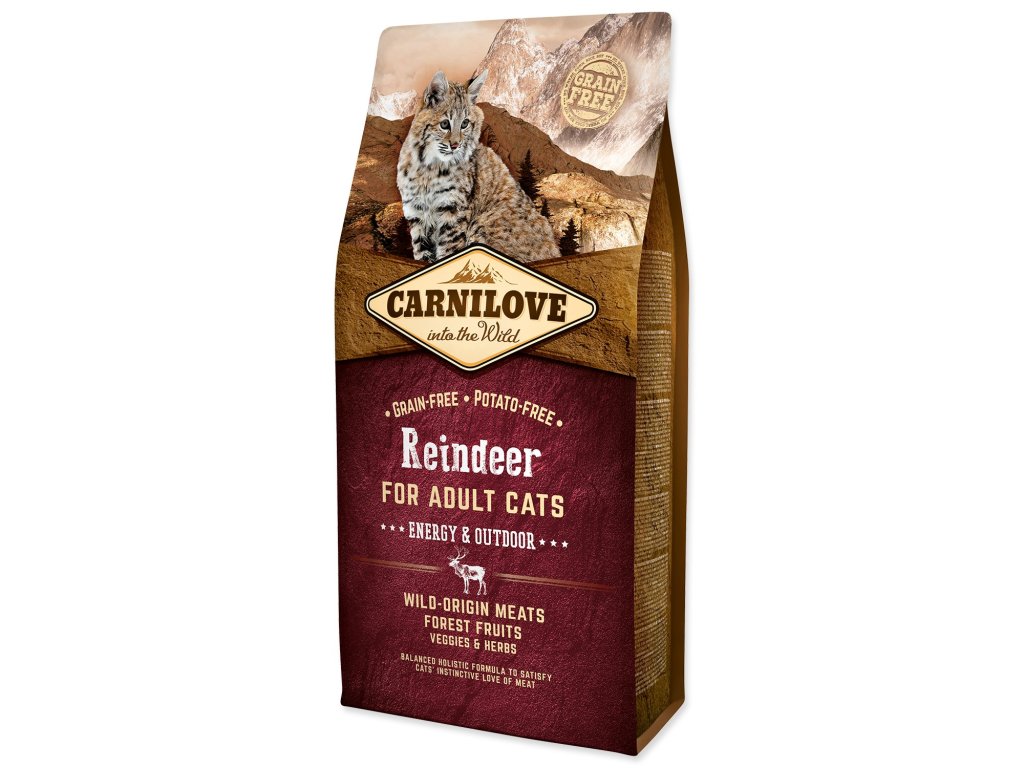 Carnilove Reindeer for Adult Cats je navržen s respektem k přirozené skladbě potravy koček. Sobí maso je vzhledem k vysokému obsahu přírodních antioxidantů, nenasycených tuku a omega-3 mastných kyselin ideální pro doplnění energie po každém kočičím dobrodružství. V kombinaci s lesním ovocem, zeleninou a bylinami poskytuje tato receptura každodenně potřebné živiny, vitamíny, minerály a antioxidanty pro perfektní kondici a formování přirozené imunity.