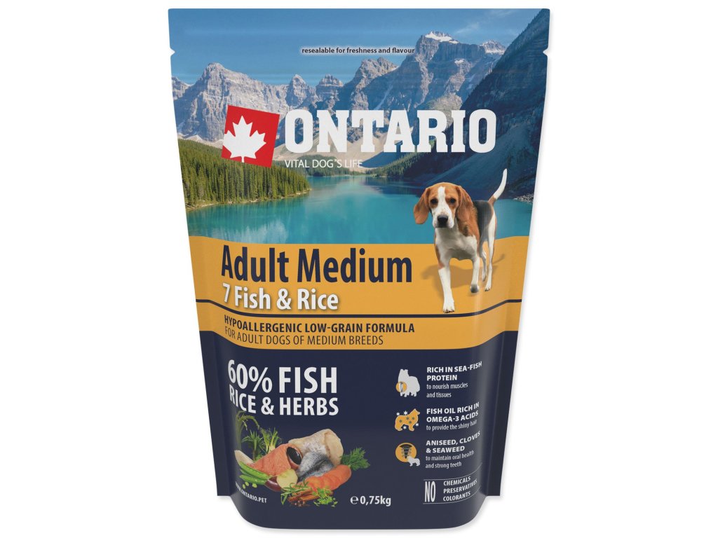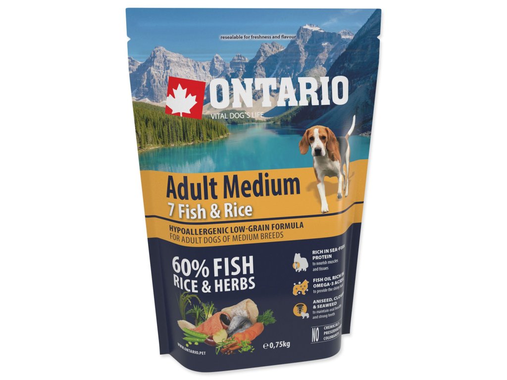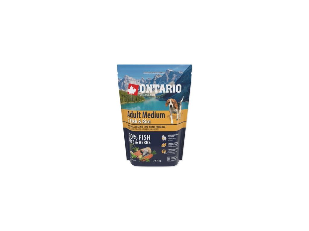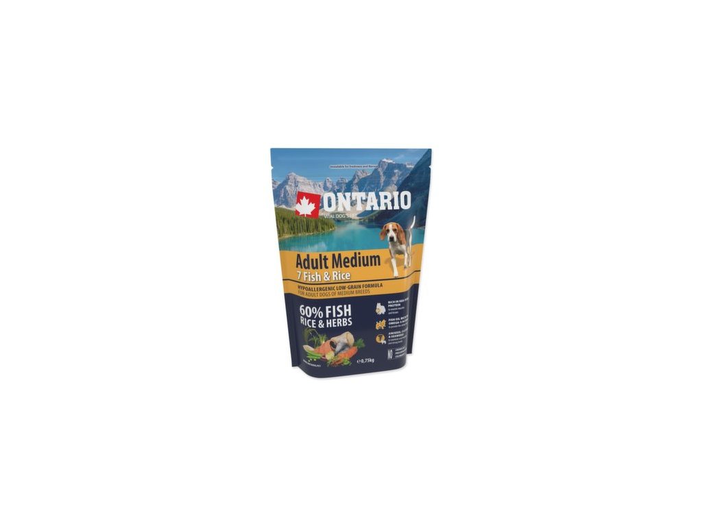 Krmivo Ontario Adult Medium Fish & Rice 0,75kg