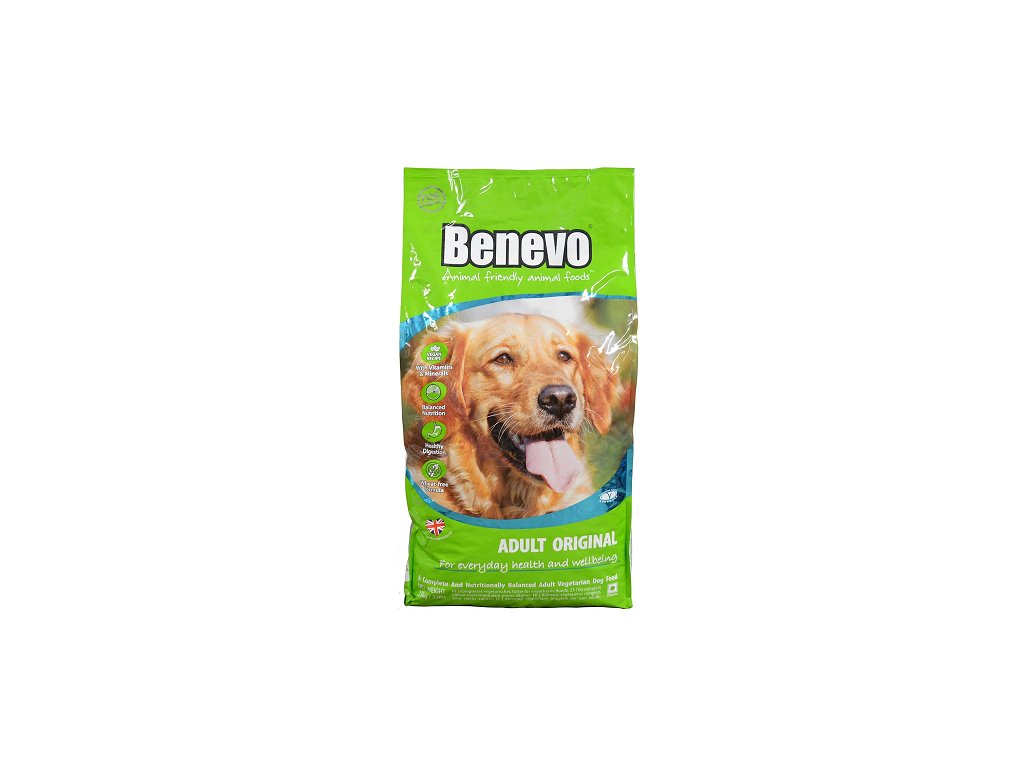 Kompletné vegánske krmivo pre dospelé psy vyrobené vo Veľkej Británii. Bohatá a prirodzene vegánska kombinácia kvalitných cereálií a zeleniny doplnená o vôňou pivovarských kvasníc zabezpečí veľmi chutné jedlo. Benevo Adult Original je bez GMO a obsahuje viac ako 27% rastlinných bielkovín a 11% tukov. Je obohatené o extra vitamíny, minerály a probiotický FOS na podporu „priateľských baktérií“ pre zdravé trávenie. Neobsahuje žiadne dodatočné farbivá ani konzervačné látky. Krmivo pre psy, Benevo Adult Original neobsahuje pšenicu a navyše obsahuje prebiotikum, ktoré pomáha tráveniu. Taktiež bol do krmiva pridaný extrakt s rastlín Yucca pre zníženie neprijemného zápachu z papulky vášho psa.