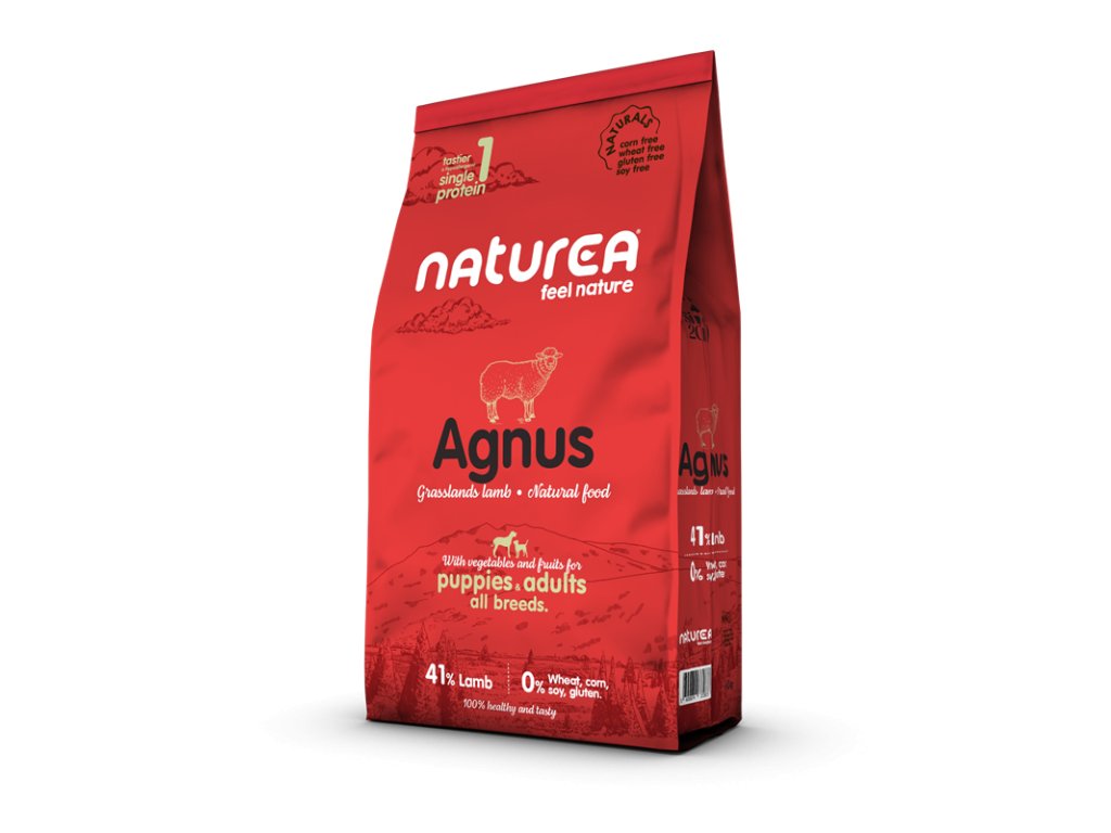 Krmivo pre psy Naturals Agnus Grasslands Lamb dodržiava koncepciu Naturally Appropriate (prirodzene vhodné). Je vhodné pre všetky plemená psov a je navrhnuté ako veľký zdroj živočíšnych bielkovín, bez pridaných hormónov, kukurice, pšenice, sóje či lepku. Je spracované tak, aby ponúklo maximálnu chuť, poskytlo vysokú nutričnú hodnotu a pritom si zachovalo maximum vitamínov a aminokyselín. Receptúra tohto krmiva pre psov bola vyvinutá len s použitím jahňacieho mäsa, jedná sa teda o takzvanú jedno proteínovú diétu, ktorá vyhovuje našim citlivým štvornohým priateľom. Vysoko chutné, hypoalergénne a s lepšou metabolizovateľnou energiou. Jeho hlavná zložka, jahňacie, je vždy čerstvé, vykostené a nikdy mrazené. Naturals Agnus Grasslands Lamb je ideálne pre psov všetkých plemien a to aj pre tých čo sú alergickí alebo s citlivým trávením. Vďaka vysokej stráviteľnosti poskytujú zložky v tomto krmive oveľa vyššiu chutnosť ako iné jahňacie krmivá na trhu.