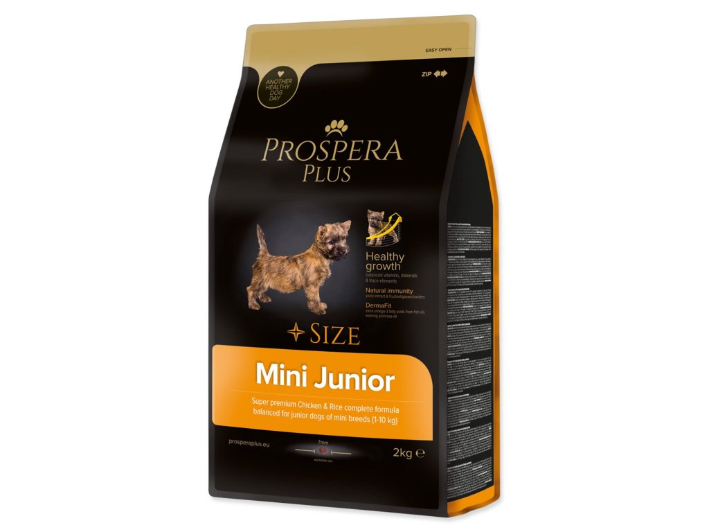 Prospera Plus Mini Junior je superpérmiové krmivo určené práve pre šteňatá a mladé psy malých plemien. Vyvážené minerály spoločne s vitamínmi zaručujú správny a zdravý rast všetkých šteniat malých plemien. Funkčné ingrediencie obsiahnuté v receptúre (rybí tuk, fruktooligosacharidy, extrakt z kvasníc) podporujú zdravú srsť a kožu Vašich psíkov.